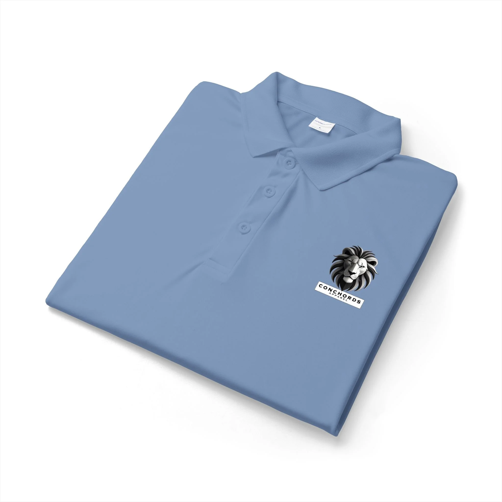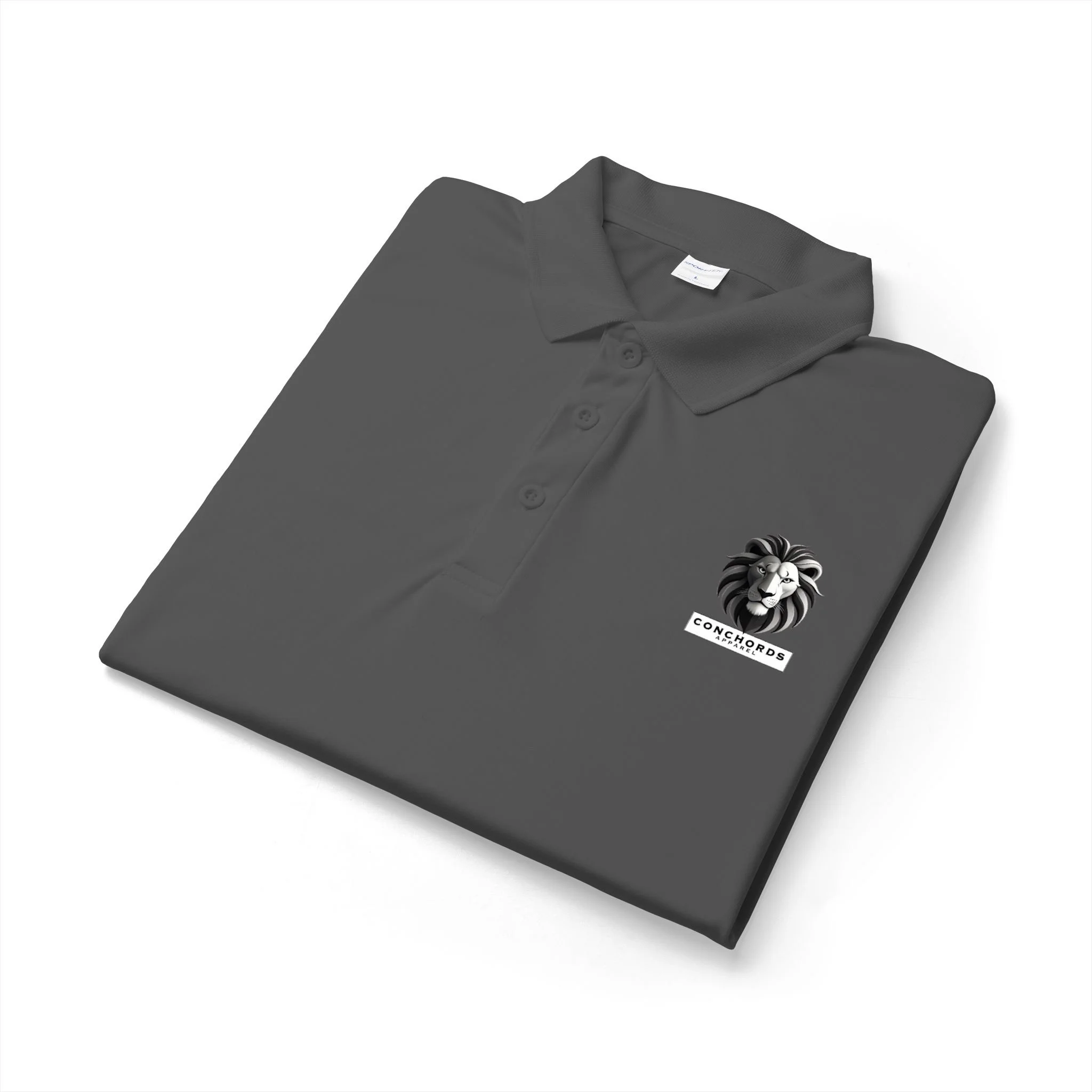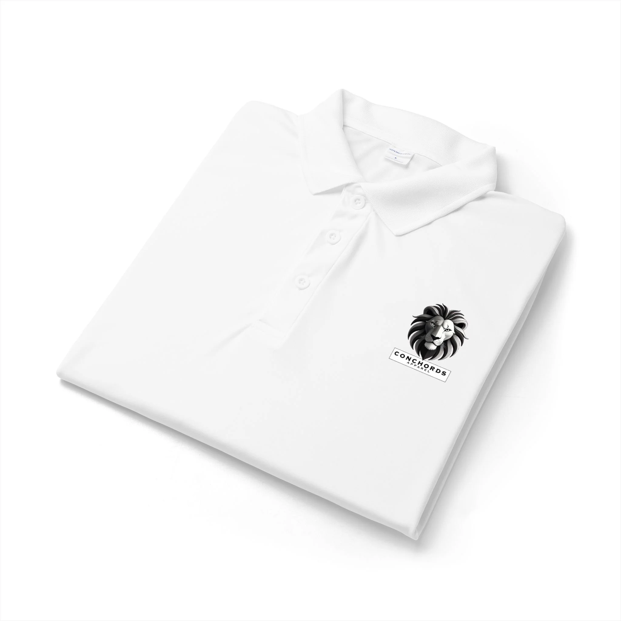 A lightweight performance polo with a clean, confident look. The smooth polyester fabric moves moisture away and keeps its shape through long days under the sun or beneath office lights. A flat knit collar and taped neck lend a tailored feel, while the three-button placket and dyed-to-match buttons keep the silhouette sleek. The small monochrome lion emblem on the chest adds quiet character — a subtle emblem of strength that fits in at client meetings, casual rounds of golf, or weekend errands. Breathable and low-maintenance, it layers easily and wears like something you reach for when you want to look put-together without fuss.