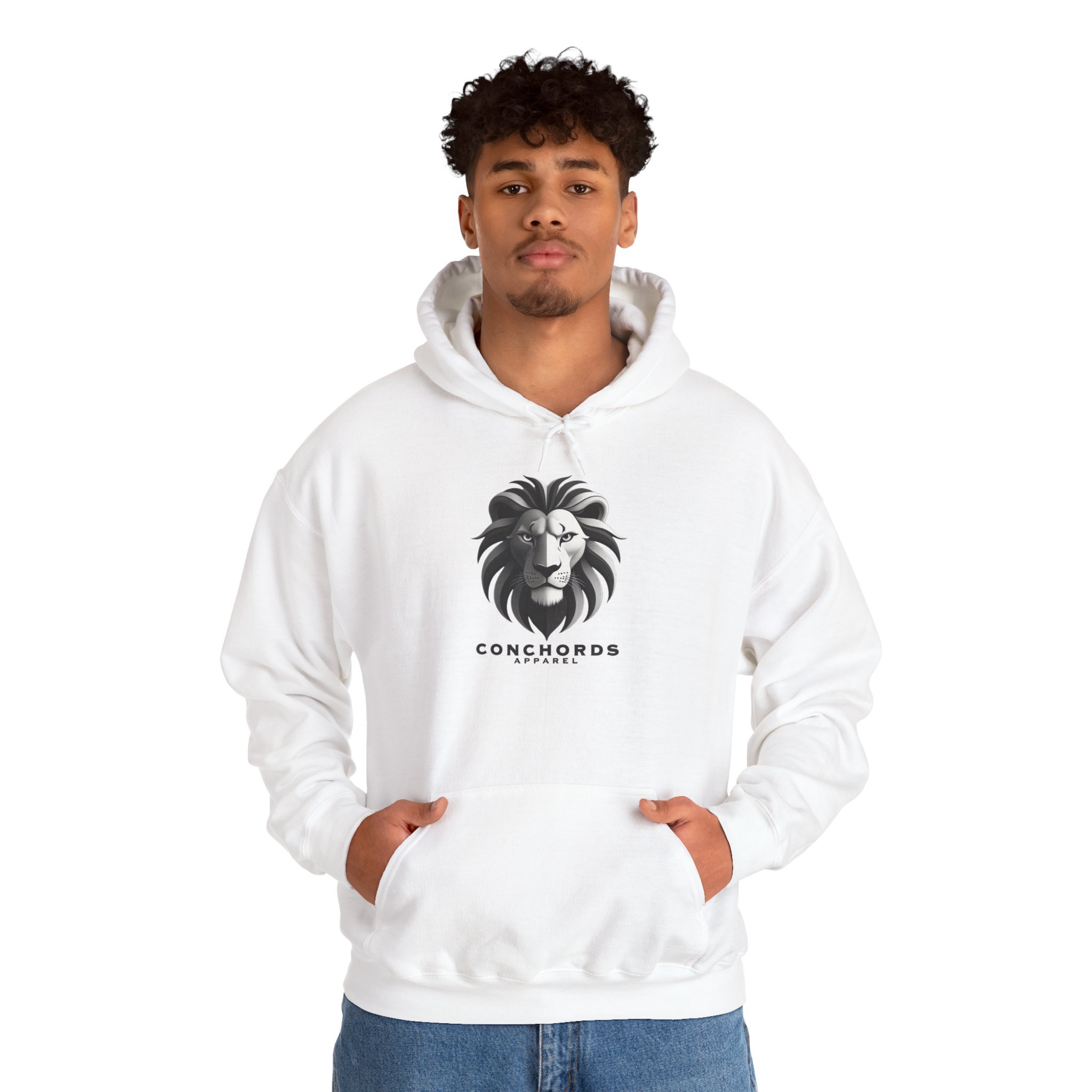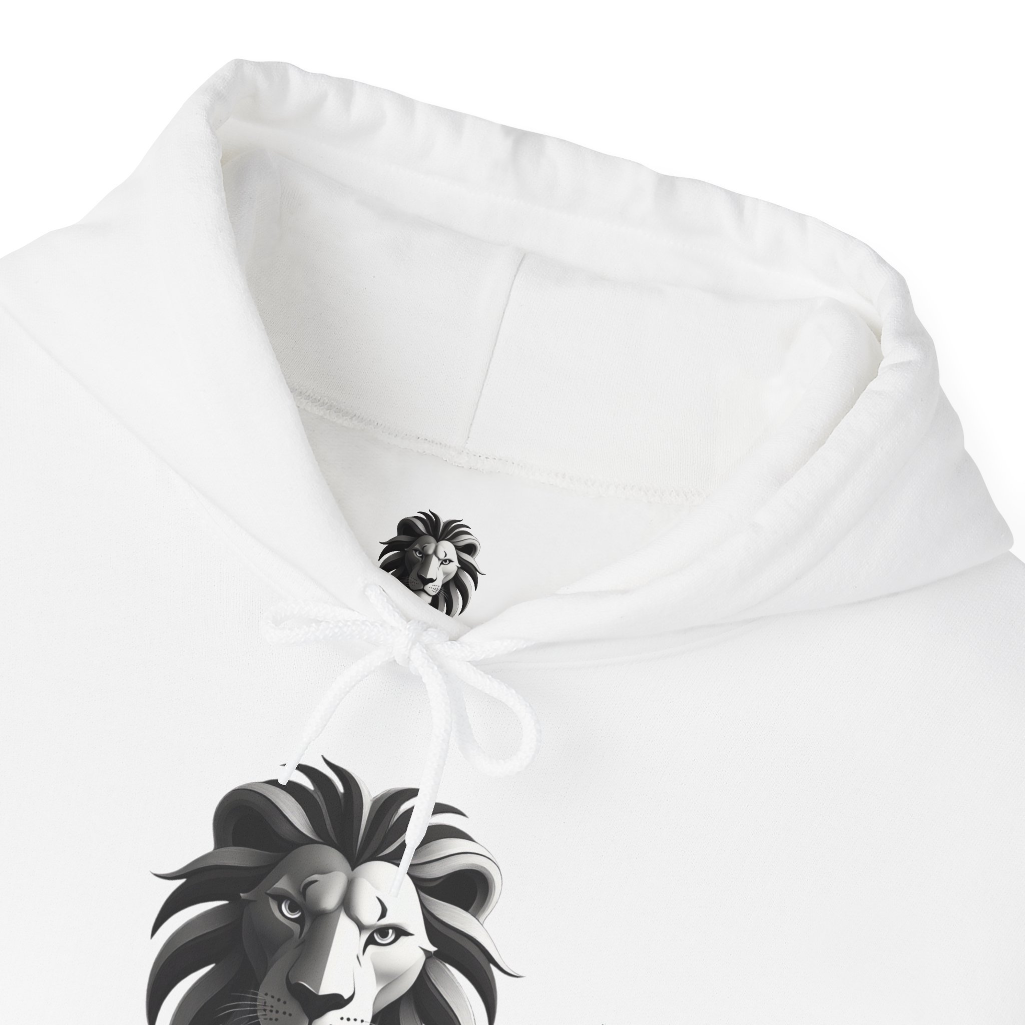 This soft, mid-weight hoodie blends quiet confidence with simple, bold design. The centered lion emblem sits like a personal crest—clean lines, subtle shading—so it reads calm and commanding on a crisp white canvas. Slip it on for brisk morning walks, long rehearsal nights, or coffee shop hours when you want to feel steady and grounded. The roomy kangaroo pocket and double-lined hood hold warmth and small essentials. Breathable cotton-poly fabric keeps the fit relaxed while the color-matched drawcord and tear-away label keep distractions low. Wear it with worn jeans, layered under a coat, or tossed over a tee between gigs—the design speaks to people who value craft, presence, and a little quiet strength.
